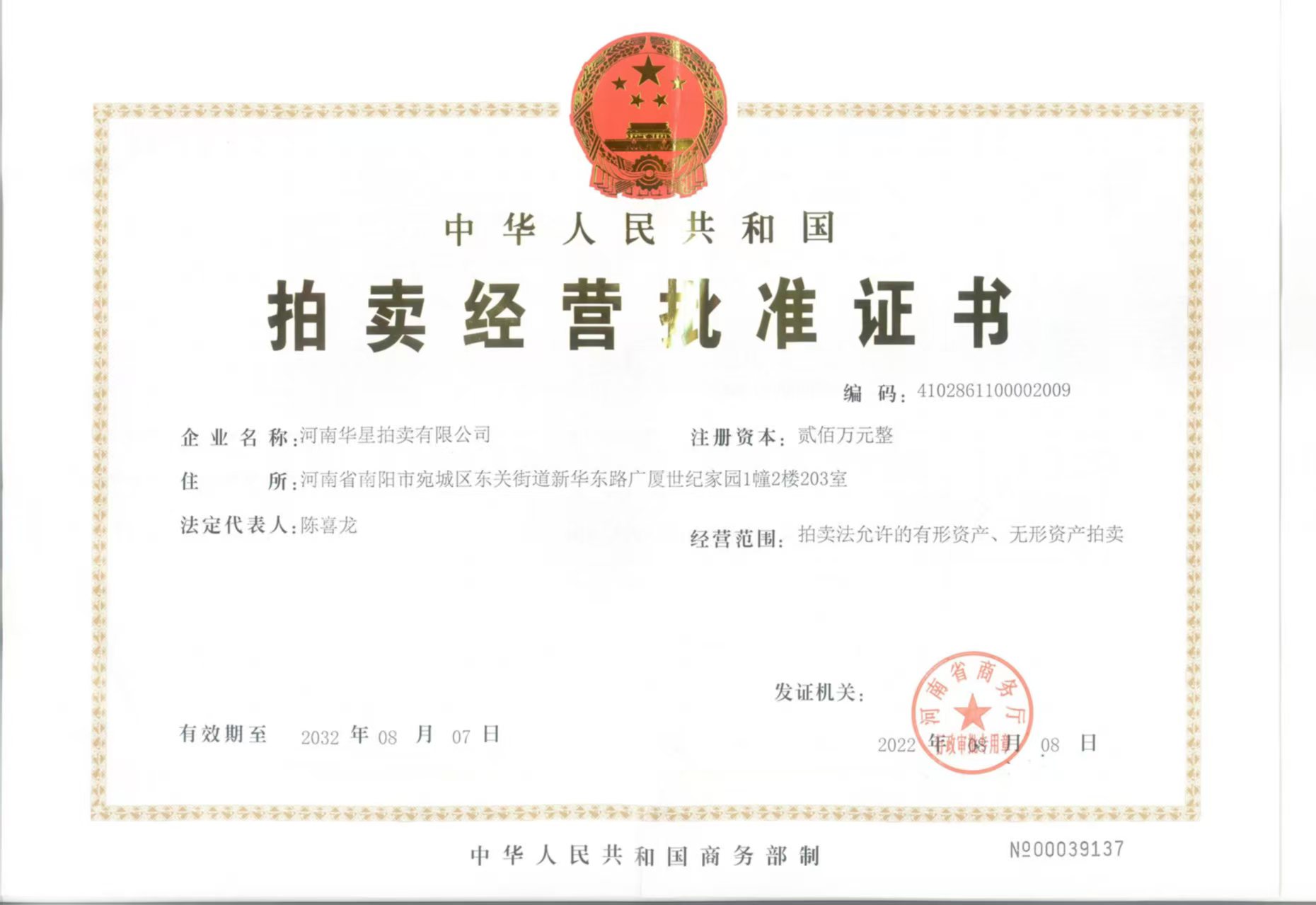 名稱(chēng):拍賣(mài)經(jīng)營(yíng)批準證書(shū)
